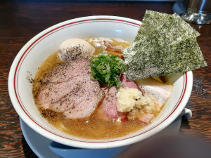 2年前もピーカンの夏空で猛暑日だったので、本土寺=猛暑のイメージがつきそう(苦笑)。 紫陽花観賞を2時間ちょっとたっぷり満喫した後は近くでランチを。 事前に調べたところ、人気のラーメン屋さんが気になったので行ってみた。2年前にはまだなかった新しいお店。 クチコミで覚悟はしてたけど、平日の12時前なのにそこそこの行列ができてました。本当に人気店ですな。